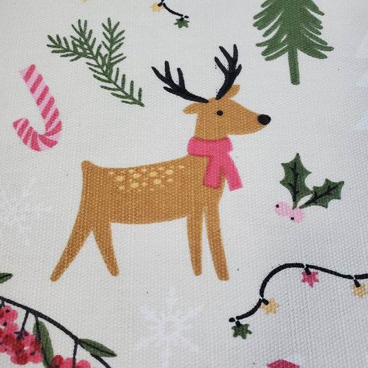Holiday Twilight Town Reindeer and Pink Peppermint 72"x 72" Cotton Shower Curtain