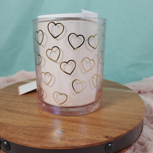 Sheffield Home Pink Glass Coffee Mug with Gold Heart Outline Design - 15oz