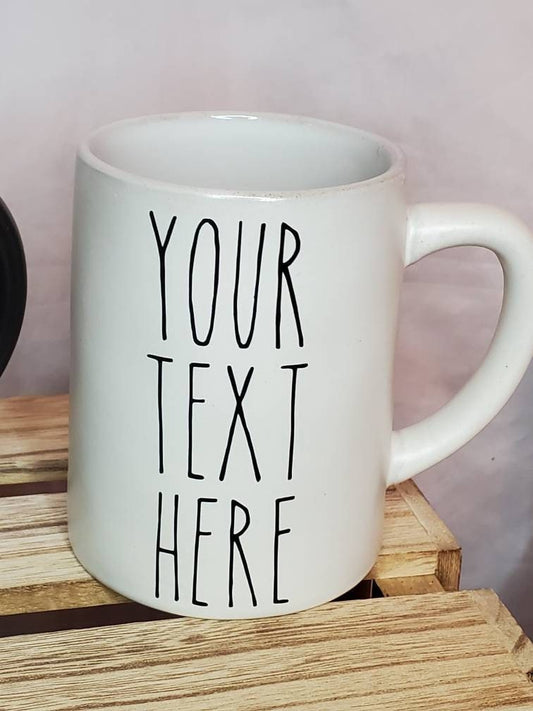 Rae Dunn Inspired Rustic Mugs in Cream, Black and Grey- Personalized