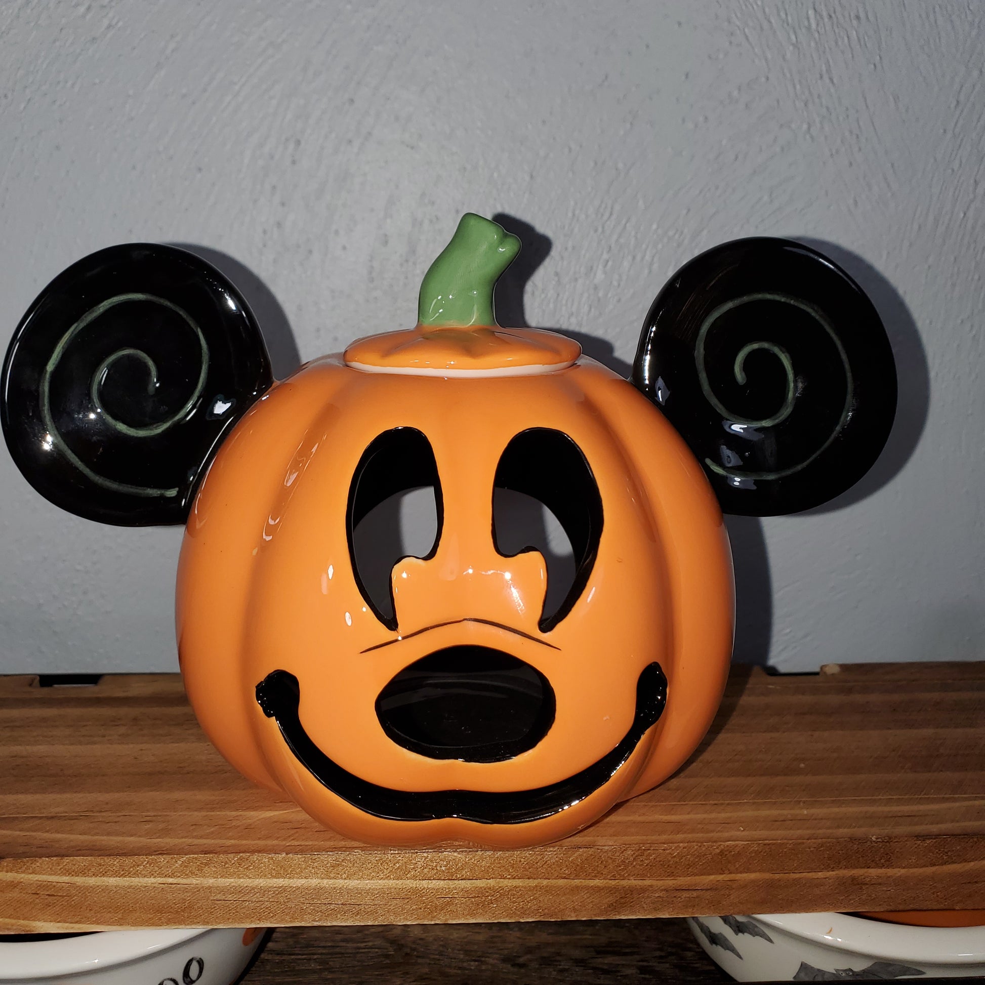 🎃 **Mickey Mouse Pumpkin Tea Light Holder - Illuminate the Magic!** 🎃