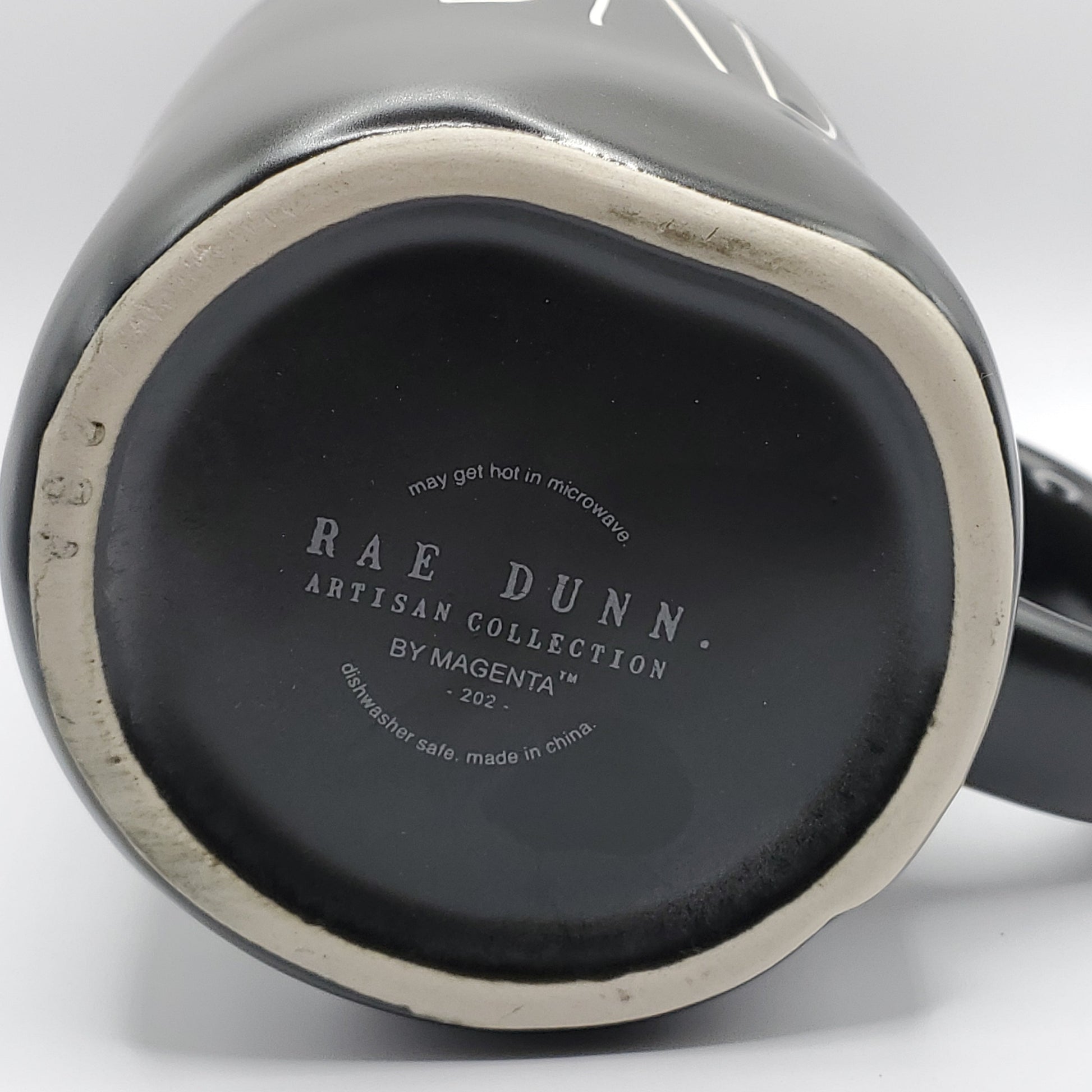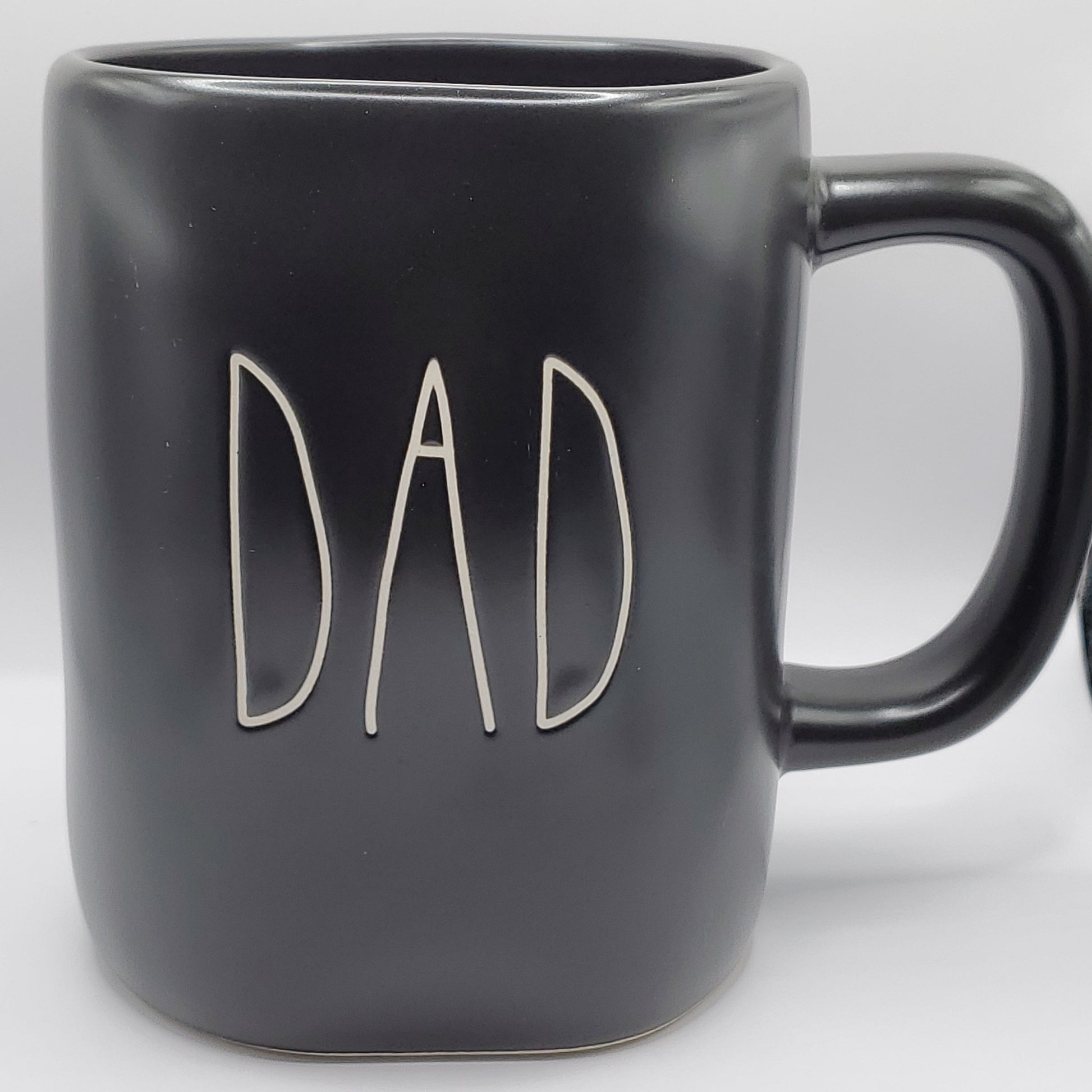 Rae Dunn DAD mug. Black mug with white engraved lettering.